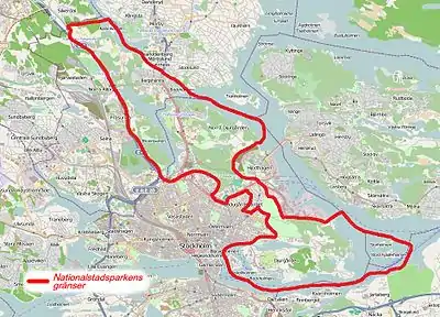 The Royal National City Park (Swedish: Kungliga nationalstadsparken) is a national urban park, established by the Swedish Parliament in 1995, and located in the municipalities of Stockholm, Solna and Lidingö in Sweden.[1]