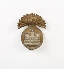 The 1852 Act introduced Militia Artillery units in addition to the traditional infantry regiments. Their role was to man coastal defences and fortifications, relieving the Royal Artillery (RA) for active service.[42][45] The Tyrone Artillery Militia was raised in 1April 1855 at Charlemont, later moving to Dungannon. Several officers transferred from the Royal Tyrone Fusiliers to assist in its formation. It appears to have used the name 'Royal Tyrone Artillery' (following theFusiliers) but this title appears to have been unofficial and does not appear in the Army List. The unit was merged into the Mid-Ulster Artillery Militia at Dungannon in 1875.[47][48][49][50]