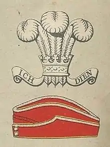 ![]() Badge and service cap as worn at the outbreak of World War II – the cap badge is simply the Prince of Wales' feathers | |