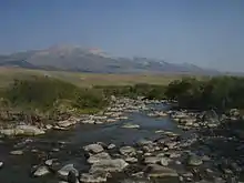 The Ruby River is a tributary of the Beaverhead River, approximately 76 mi (122 km) long, in southwestern Montana in the United States. It rises in the Beaverhead National Forest in southwestern Madison County between the Snowcrest Range and the Gravelly Range. It flows north through the Ruby River Reservoir, past Alder, then northwest, flowing between the Tobacco Root Mountains to the northeast and the Ruby Range to the southwest. It joins the Beaverhead near Twin Bridges. The Beaverhead becomes the Jefferson River 2 mi (3.2 km) downstream where it joins the Big Hole River.