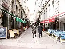 The Rue des Marronniers is a street located in the Bellecour quarter, in the 2nd arrondissement of Lyon. It is a small paved pedestrian street famous for its many bouchons. It is served by the metro station Bellecour and many buses. The street belongs to a zone classified as a World Heritage Site by UNESCO.
