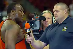 Rulon Ellis Gardner (born August 16, 1971) is an American retired Greco-Roman wrestler. He won the gold medal at the 2000 Olympic Games, defeating Russia's three-time reigning Olympic gold medalist Aleksandr Karelin in the final;[2] Karelin was previously unbeaten for 13 years in international competition. Gardner won a bronze medal at the 2004 Games.[1] In 2010, he was inducted into the National Wrestling Hall of Fame as a Distinguished Member.[3]