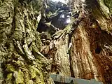 There was an iron band around the trunk to support it, thought to have been put there in the 19th century. It was partially replaced after being cut in 2005 by someone who said he wanted to "free" the tree.[7] In 2013, new interventions, such as wire supports, were installed.[8] A chain a little higher up prevents the trunk from splitting; the tree is now completely hollow. Climbing has been forbidden since 1998 and there is a fence around the tree; going closer than 5 metres (16 ft) is not permitted.[9]