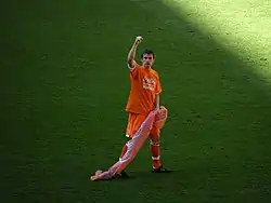 Following a recommendation by Willie McStay to former teammate and Everton manager David Moyes, Coleman was signed by the Merseyside club for £60,000[18] in January 2009, ahead of other interest from Ipswich Town, Birmingham City and Celtic.[19] Before playing a game for Everton, Coleman had to undergo surgery on a career-threatening infected blister.[20] He made his debut on 22 October 2009 in the Europa League group stage in a 5–0 loss to Benfica at the Estádio da Luz, being beaten to the ball by Javier Saviola for the first goal.[21] Three days later in his Goodison Park debut, a Premier League match against Tottenham Hotspur, Coleman was named Man of the Match after coming on as a first-half substitute for the injured Joseph Yobo, and played an instrumental part for both of Everton's goals in a 2–2 draw.[22] He made his FA Cup debut against Carlisle United in the third round on 2 January 2010, replacing Tony Hibbert in the 80th minute and creating a goal for Tim Cahill two minutes later, in a 3–1 home win.[23]