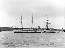 SMS Bussard ("His Majesty's Ship Bussard—Buzzard")[lower-alpha 1] was an unprotected cruiser of the Imperial German Navy, built in the 1880s. She was the lead ship of her class, which included five other vessels. The cruiser's keel was laid in 1888, and she was launched in January 1890 and commissioned in October of that year. Intended for overseas duty, Bussard was armed with a main battery of eight 10.5-centimeter (4.1 in) guns, and could steam at a speed of 15.5 knots (28.7 km/h; 17.8 mph).