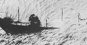 After the initial torpedo strike, the commander of U-123, Kapitänleutnant Reinhard Hardegen, surfaced his boat to finish the stricken tanker. In doing so he realised that they were close to the highly illuminated and populated coast of Jacksonville, and that there was the risk that if he fired, shots that flew over the Gulfamerica could hit the shore, putting civilian lives at risk. He therefore navigated around the Gulfamerica, placing himself between the shore and the tanker, and ensuring that shots that missed would land in the sea.[1] In doing so, he lost valuable time. The distress call was received, and U-123 was later engaged by the destroyer USS Dahlgren.[2] U-123 was damaged, but able to make a narrow escape back to Europe.