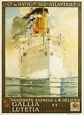 SS Lutetia was a steam ocean liner of the Compagnie de Navigation Sud-Atlantique. She was completed in 1913.[1] Lutetia was the Roman city on the site of what is now Paris.