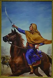 Gurbaksh Singh died fighting in the Battle of Batala against the Sukerchakia Misl, the Ramgarhia Misl as well as the Sansar Chand Katoch. In 1785, Sada Kaur, along with Jai Singh Kanhaiya, then got her daughter married to Ranjit Singh, the Sukerchakia Misl's chief's son, and they were married in 1786.[6] In 1789, her father-in-law, Jai Singh Kanheya, also died.[6] Sada Kaur then assumed the leadership of the Kanhaiya Misl as well as the loyalty of its 8,000 cavalrymen.[4] After the death of his father, Mahan Singh, in 1792 Ranjit Singh was made the chief of the Sukerchakia Misl and Sada Kaur became his regent.[4] Sada Kaur used both Kanheya and Sukerchakia misals to push Ranjit forward.