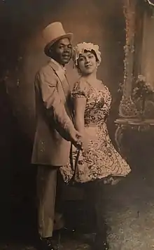 Sadie took to the stage in London in her mid teens, and it is clear that early on she developed a taste for black popular culture, and music in particular. She would marry twice; both her husbands were black Americans. Numerous photographs show she presented herself as a 'black', 'coloured' or 'creole' woman and several newspaper articles also suggest that her origins were more exotic than they really were.[10] Throughout her career she seems to have used professionally the forename Sadie, although the origins of this stage name are not known.