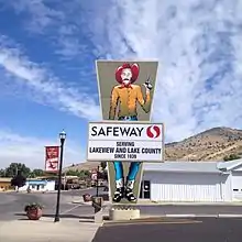 A "marina-style" Safeway in Hamilton, Montana, built in 1962. This still-operating store keeps the Marina design, but the red letters have been replaced with the current logo.