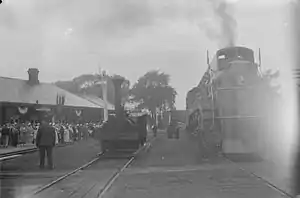 In celebration of the 100th anniversary of the first train in Canada, a replica of an old steam engine used by The Champlain & St. Lawrence Railway was brought into the Saint-Jean-sur-Richelieu railway station in 1936