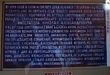 By the end of the spring of 1900 the construction of the temple was considerably advanced, but the construction had to be stopped because of the outbreak of the Yihetuan rebellion.[5] In Manchuria they began to destroy ready and under construction sections of the CER, to set fire and to plunder station settlements. In July they approached Harbin, so urgent evacuation was prepared and measures for armed self-defense were taken.[6] Staff formations of the Security Guard, with the participation of numerous volunteers, were involved in the defense of the city. The Russian government refrained from active action until a certain point. When the Yihetuan approached the Amur River and began shelling the Russian city of Blagoveshchensk from the Chinese side of the river, troops were sent to Manchuria. In coalition with several Western powers, the Yihetuan rebellion was suppressed in a relatively short period of time.[6]