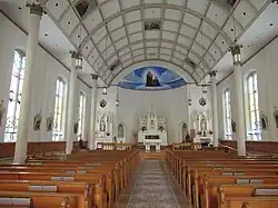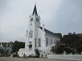 The Jesuit missionary Claude Dablon inaugurated the original church on Mackinac Island in 1670, and the earliest surviving parish records date back to 1695.[2] After moving from Fort de Buade to Fort Michilimackinac about 1708 and from Fort Michilimackinac to Mackinac Island in 1781, the parish used a historic log church for decades. It constructed the current church complex in 1874 on a site donated by the former fur trader Magdelaine Laframboise.[3] The church was dedicated as a Michigan State Historic Site on December 20, 1990.