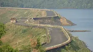 The Selaulim Dam is located on the Selaulim River, a tributary of the Zuari River in Goa, India, is an integral component of the Selaulim Irrigation Project which envisages benefits of irrigation and drinking water supply.[1][2][3] The dam is a composite earth+masonry dam of 42.7 metres (140 ft) height with a water spread area of 24 km2 (9.3 sq mi).[1]