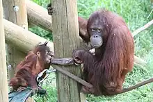 - ↑ "Orphaned baby orangutan at Hogle Zoo has his big debut; sister steps in to help mother". Deseret News. April 13, 2015. Retrieved July 19, 2023.