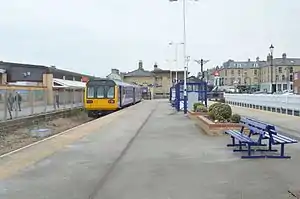 In its heyday, the station had four platforms and a sizeable number of carriage sidings to handle the large quantities of excursion trains that ran there – these included services from as far away as Leeds and Blackpool.[2] There was also a short siding extension (approximately 300 yards (270 m)) from the main station to another platform at the rear of the railway-owned Zetland Hotel (opened in 1863) where passengers in first class carriages could disembark directly into their accommodation.