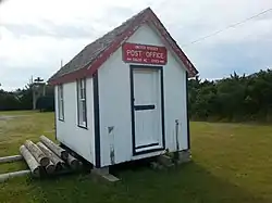 The Salvo Post Office is a historic post office building located at Salvo, in Dare County, North Carolina, on the Outer Banks. It was built about 1910, and is a small frame building measuring 8 feet by 12 feet (about 2.4 by 3.6 meters). The interior consists of the post office lobby and the postmaster's workroom. It reflects a unique tradition of a portable building being purchased by succeeding postmasters and moved to their respective properties. It is recognized by the U.S. Postal Service as the second-smallest post office building in the nation, after the Ochopee Post Office in Florida. The building was restored after being damaged by fire in October 1992.[2]