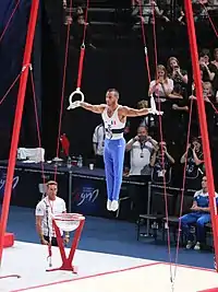 Samir Aït Saïd (born 1 November 1989) is a French male artistic gymnast and a member of the national team. He has won a total of three medals, in each color, in the rings apparatus at the European Championships (2013 to 2015), and was also selected to compete for the French men's artistic gymnastics squad at the 2016 Summer Olympics in Rio de Janeiro.[1][2] He was a French flag bearer in the opening ceremonies of the 2020 Olympics in Tokyo, and performed a backflip while he was there.