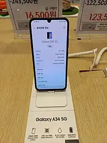 The Samsung Galaxy A34 5G is a mid-range Android-based smartphone developed and manufactured by Samsung Electronics as part of its Galaxy A series. The device was announced on March 15, 2023.[3][4][5][6]