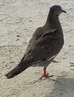 The bird species named San Andres vireo (Vireo caribaeus), which can also be found at Providence and St. Catherine Islands, favors mangrove and scrub bush habitat.[3] It is a small, innocuous, but delicate bird, green in color, in the family Vireonidae of order Passeriformes. It is about 5 inches (130 mm) in length, weighs about 16–20 g, found in clutch size of 2, and feeds on insects and fruits. IUCN has listed this bird species under the critically endangered list. Its habitat has been threatened due to large-scale expansion of the island lands for development of the capital city in the last few decades. It is reported that habitat of these birds is now confined to about 18 km2 (6.9 sq mi) area in the southern part of the island. Its distinguishing noise feature (song feature) is a single note repeated 2–20 times. In order to protect this local species, it has been suggested that the mangrove swamps of the island be declared as a protected area.[3] Another bird found in abundance on the island is the white-winged dove (Zenaida asiatica).