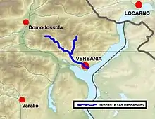 The San Bernardino passes through the communes of San Bernardino Verbano (which takes its name from the river), Cossogno and finally Verbania, where it separates the population centres of Pallanza and Intra and falls into Lake Maggiore.