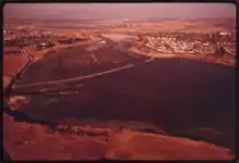 During the 1930s the area around the mouth of San Diego Creek was developed extensively for salt production, with numerous evaporating ponds in the Upper Newport Bay Salt Works.[30] In 1932 the Irvine Conservation Dam, an earthen structure 27 feet (8.2 m) high, was built across San Diego Creek a mile (1.6 km) above the mouth, to capture storm runoff for irrigation, as well as provide flood protection to the salt works. The dam was removed in 1963. Severe flooding in 1969 destroyed the salt works and subsequent floods filled much of the bay with sediment. After a proposal to turn the area into a yacht harbor in the 1970s was thwarted by conservation groups, the bay is now a protected wetlands area.[24][31]