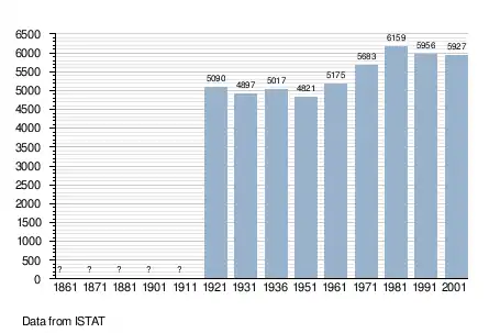 - ↑ "Popolazione Residente al 1° Gennaio 2018". Italian National Institute of Statistics. Retrieved 16 March 2019.