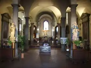 The interior had a Madonna with Child and Saints by Ridolfo Ghirlandaio. Another chapel has a fresco by Giovanni da San Giovanni, depicting San Felice reviving St Massimo; the angels gathering the grapes in the painting are by Baldassare Franceschini. It had a triptych (1467) by Neri di Bicci, depicting St Augustin and St John Baptist, and St Julian and King St Sigismond. Another chapel had a Madonna and Child with St Hyacinth, by Jacopo da Empoli.[1] The church has a Last Supper by Matteo Rosselli.