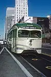 109. Ehrlich, Peter (August 22, 1990). "MUNI F-LINE PCCs--Ex-SEPTA 2133 arr Metro Center". Flickr. Retrieved 22 November 2021.