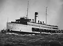 The staging camps were connected to the terminals and piers in Oakland and San Francisco by water transport. Army harbor boats made routine trips but the main transport for troops was by means of ferries. The well known excursion vessels that served Santa Catalina Island, Catalina and Cabrillo, were drafted into service. Their Army designations were FS-99 and FS-100 respectively.[25] The Oakland-San Francisco ferry Yerba Buena, later renamed Ernie Pyle, also joined the fleet. The trip to piers in San Francisco took three to four hours.[26]
