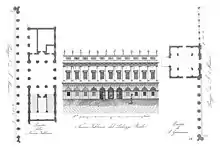 Plan of San Geminiano (right) and a plan and elevation of the Napoleonic wing of the Procuratie which replaced it (centre and left)