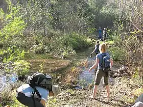 ![]() Hikers ford San Juan Creek below the hot springs, February 2008. | |