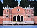 The San Michele Cemetery (Italian: Il cimitero di San Michele) has been Venice’s principal cemetery since its creation in 1807. The cemetery is located on the island of Isola di San Michele between Venice and Murano. In addition to the main consecrated Catholic burial ground, there are separate Protestant and Eastern Orthodox sections catering to non-Catholics. The Jewish cemetery of Venice, however, is located on the island of Lido. Both the cemetery and the island are named after the church of San Michele in Isola built in the 15th century on the island, dedicated to Saint Michael the Archangel.