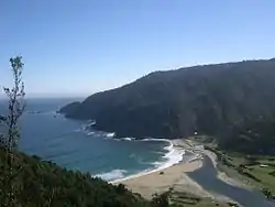 On September 18, 1544 twelve men of the expedition of Juan Bautista Pastene made landfall in San Pedro Bay, southern Chile, with Jerónimo de Alderete claiming the territory for the Governor of Chile and the King of Spain.[1] The landfall was likely in what is today known as Caleta Guayusca.[1] The Spanish captured two male and two female indigenous inhabitants as proof of their discovery.[1] Thereafter, on the same day, the expedition sat sail to the north.[1] The site Futawillimapu.org refers to this event as the beginning of the winka invasion.[2]