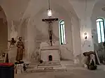The architecture is characterized by its single lancet windows and an apse, which is decorated with traces of frescoes in the lateral areas. The frescoes were made by the artist Giovanni Luca De Luca (son of Giovanni Luca de Magistro) between 1564 and 1578. The left apse is frescoed with the images of Saint Andrew and Saint Peter while another represents the resurrection of Christ.[5][8]
