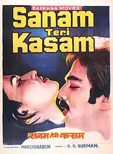 Sanam Teri Kasam (transl. Swear on you, my beloved) is a 1982 Indian Hindi-language film directed by Narendra Bedi[1] and produced by Barkha Roy, starring Kamal Haasan, Reena Roy, Kader Khan, Ranjeet, Jeevan.Movie's storyline is somewhat similar to Shammi Kapoor hit Tumsa nahin dekha. The film became a hit at the box office and was more successful in the big cities.[2][3][4]