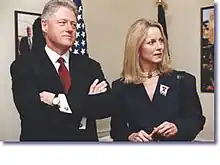 ![]() Bill Clinton and Sandra Thurman at the 1998 World AIDS Day Commemoration at the White House |