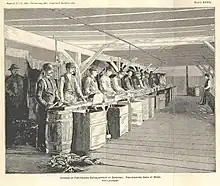 Sandusky's rise in the 19th century was heavily influenced by its location at the head of Sandusky Bay. This made it a key point both for the movement of goods and for the movement of people. The mild climate caused by its proximity to Lake Erie also caused it to become the center of Ohio's wine industry. The presence of limestone was also important in its development. It was also a key location for ice harvesting in the 19th century.[20] Lumber transport, stone quarrying and, in the early 20th century, manufacturing, have all contributed to the city's economic development.
