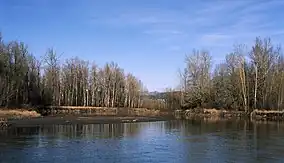 As the farthest northwestern edge of the Columbia Gorge scenic area, Sandy River Delta is a popular location for hiking, dog walking, horseback riding, and waterfowl hunting.[3] The 1.25 mile Confluence Trail is an ADA accessible trail that leads to a bird blind installed as part of the Confluence Project and designed by Maya Lin.[6]