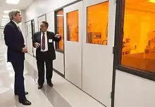 Professor Sanjay Banerjee discusses his work at the Microelectronics Research Center with former Secretary of State John Kerry (April 2016).[1]