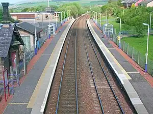 ![]() Sanquhar station from the road bridge looking towards Kirkconnel, in 2007 | |