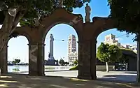 On 3 May 1494 Castilian troops under the control of the conqueror Alonso Fernández de Lugo disembarked on the beaches of the present city and founded a military camp that would eventually develop into the city.[17] From this place began the conquest of the island of Tenerife. During the foundation, Alonso Fernández de Lugo placed a large wooden cross in reference to the day of disembarkation, during the Catholic festivity of the Invention of the Cross (3 May). After the conquest and defeat of the Guanche aborigines, the capital of the island was initially established in the city of San Cristóbal de La Laguna, which was founded in the same year of the conquest of the island in 1496.[17]