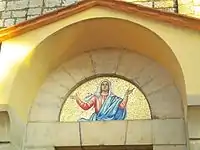 The modern church reproduces the ground plan of the ancient building. The façade, in the limestone cornice, is divided by thin pilasters into five bays, not reproducing the previous ornamental arches in the roof eaves. The central bay contains the neomedieval portal with archivolts, over which is a lunette covered with a sort of porch.