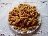 Apart from the sopas do impéro (soups traditionally served during Pentecost), Santa Maria has a rich gastronomic history that includes sopa de nabos (a turnip soup), bolo de panela (a pan cake), Ccçoila (a thick meat stew in a traditional ceramic pot), molho de figado (a liver stew/sauce), sopa de peixe (fish soup), and caldeirada de peixe (a mixture of fish or seafood in broth and/or bread). Sweet desserts, such as suspiros (meringues), melindres (honey cakes), biscoitos encanelados, tigeladas (a pudding), biscoitos de orelha, biscoitos brancos, biscoitos de aguardente and cavacas (sugar-coated biscuits), are also popular.