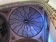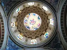 The cupola dome interior's mural, above the stained-glass windows, was painted by Juan Cordero with an image of "God, the Father" surrounded by images representing virtues.[3]