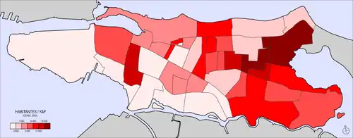 | Nr. | Sub-barrio | Land Area (m2) | Population (Census 2000) | Density km−2 | |