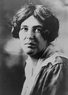 Sara Bard Field (September 1, 1882 – June 15, 1974) was an American poet, suffragist, free love advocate, Georgist, and Christian socialist. She worked on successful campaigns for women's suffrage in Oregon and Nevada.[1] Working with Alice Paul and the National Woman's Party at the 1915 Panama-Pacific International Exposition in San Francisco, Field drove across the country from California to Washington, D.C., to present a petition containing a reported 500,000 signatures demanding a federal suffrage amendment to President Woodrow Wilson. She was known as a skilled orator and became a poet later in her career, marrying her long-time partner and mentor, poet and lawyer C.E.S. Wood.