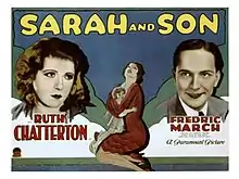 Sarah and Son is a 1930 pre-Code American drama film directed by Dorothy Arzner. The screenplay by Zoë Akins was adapted from Timothy Shea's novel of the same name.[1] It stars Ruth Chatterton, Fredric March, Gilbert Emery, and Doris Lloyd. It was filmed at Paramount Studios in Los Angeles and released by Paramount Pictures.