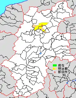 • January 14, 1879 - Due to the district, ward, town and village status enforcement, the district seat was located at the village of Shiozaki.