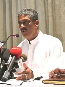 Field Marshal Gardihewa Sarath Chandralal Fonseka, RWP, RSP, VSV, USP (Sinhala: ගාර්දිහේවා සරත් චන්ද්‍රලාල් ෆොන්සේකා, Tamil: சரத் பொன்சேகா; born 18 December 1950), commonly known as Sarath Fonseka, is a retired Sri Lankan army officer and politician. He was the eighteenth Commander of Sri Lanka Army, and under his command the Sri Lanka Army ended the 26-year Sri Lankan Civil War in 2009, defeating the militant group, Liberation Tigers of Tamil Eelam; he thereafter briefly served as the Chief of Defence Staff.[1] After retiring from the Army with the rank of General, he entered politics as the common opposition candidate in the 2010 presidential election contesting against President Mahinda Rajapaksa.